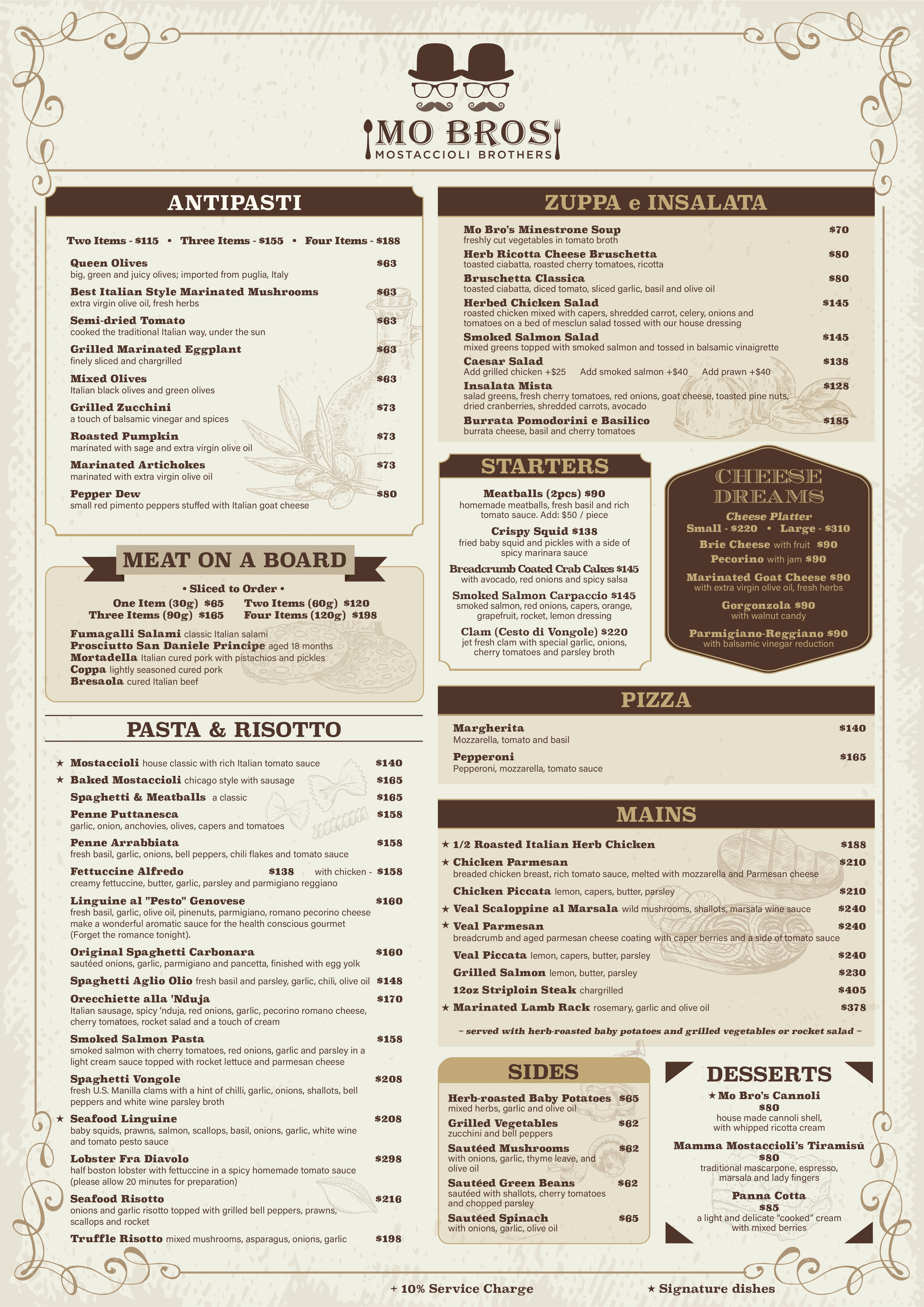 MAKE RESERVATIONMo Bros brings you some of the best dishes to come out of the Italian immigrant tradition in America during the 50s and 60s. Specialties such as its namesake pasta dish, mostaccioli, are made from simple recipes and boast a humble wholesomeness evocative of early immigrant family kitchens, while dishes such as the veal scaloppini marsala add a balancing touch of modern flavor. Mostaccioli Brothers also offers a spacious outdoor dining and bar area right in the center of Soho.